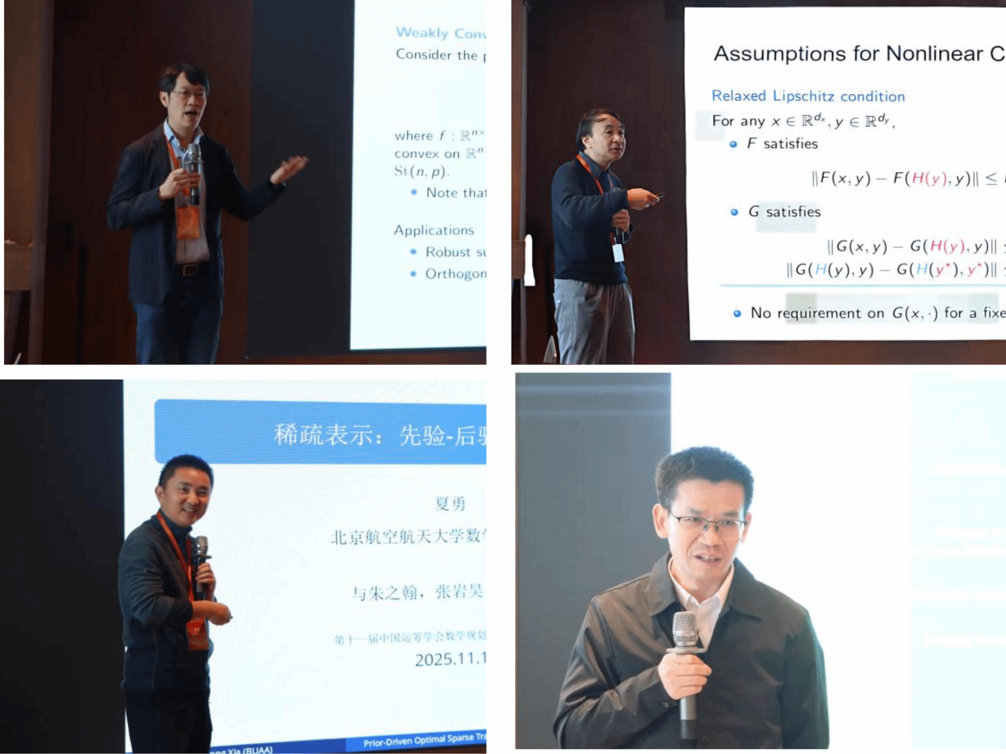在大会特邀报告阶段,香港中文大学苏文藻教授以“Randomized Riemannian Submanifold Subgradient Method for Optimization over Stiefel Manifold”为题,介绍了流形优化领域的最新算法突破,分享了该领域的前沿研究进展。北京大学的张志华教授围绕“Stochastic Optimization, Stochastic Approximation and Statistical Inference”展开讲解,深入分析了跨学科研究中的核心逻辑及其相互关系。北京航空航天大学夏勇教授的报告以“稀疏表示:先验-后验域变换框架”为题,为信号处理与机器学习的融合提供了全新的思路和方法。中国人民大学的朱利平教授则结合“概率论与数理统计国际学术期刊论文发表情况”,为青年学者如何提升国际学术影响力提供了宝贵的实用建议。每场报告都引发了热烈的讨论,学术氛围浓厚,启发了与会者对相关领域的深刻思考。