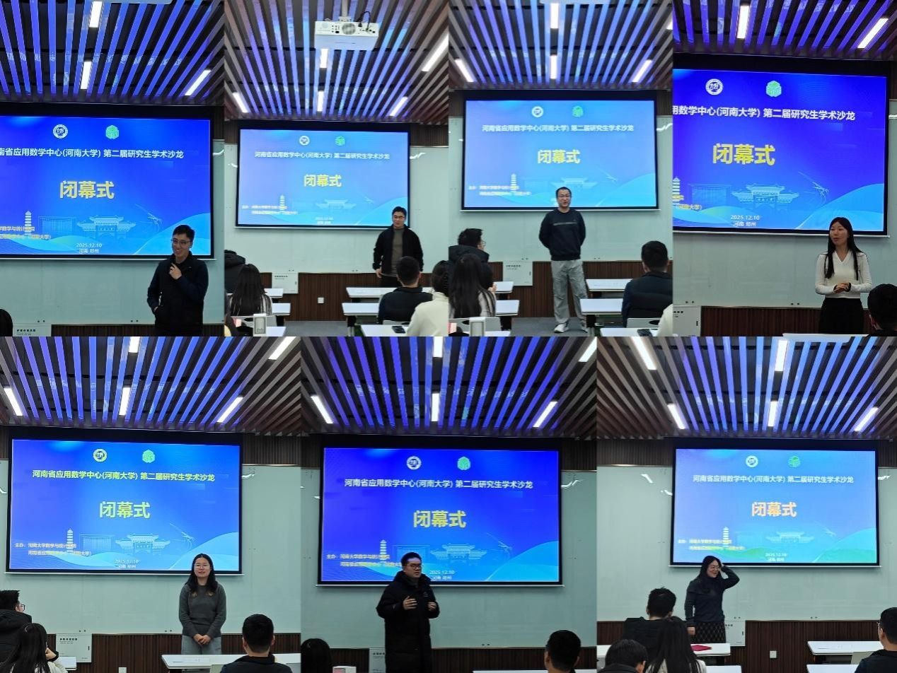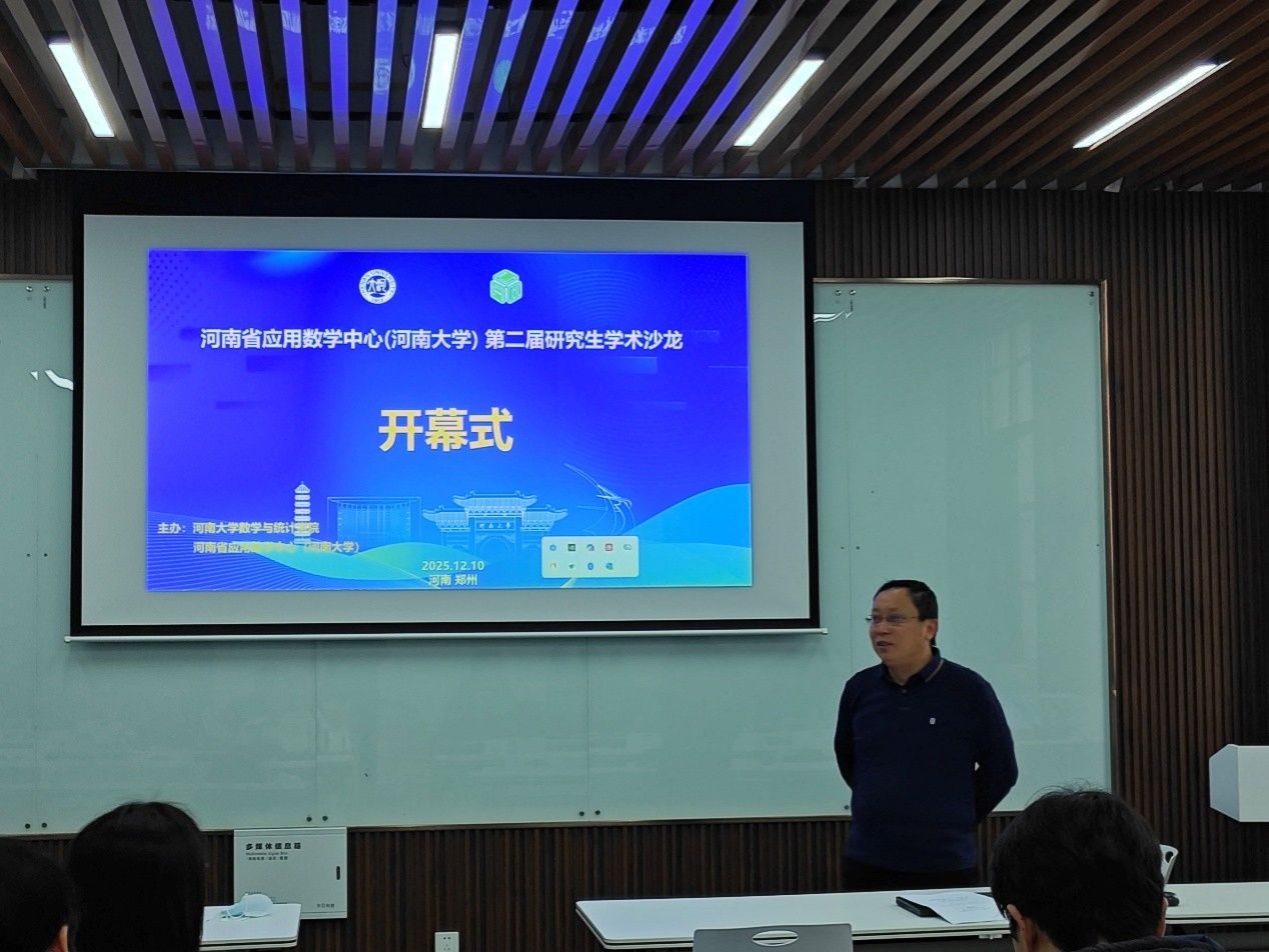为进一步加强研究生学术交流,锤炼科研创新思维,提升学术研究能力,2025年12月10日,河南省应用数学中心(河南大学)第二届研究生学术沙龙在中心九章学堂南楼209研讨室圆满落幕。本次活动由河南大学数学与统计学院、河南省应用数学中心(河南大学)联合主办,聚焦应用数学前沿研究方向,为院内研究生搭建了成果展示、思想碰撞、经验共享的学术平台,吸引了不同年级、不同研究方向的研究生积极参与。