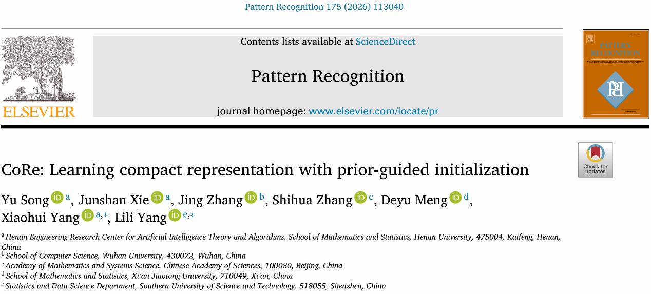 此项研究成果由河南大学数学与统计学院、西安交通大学、中国科学院和武汉大学合作完成。学院宋宇博士为第一作者,学院杨晓慧教授和南方科技大学杨丽丽老师为共同通讯作者,学院解俊山教授、西安交通大学孟德宇教授、中国科学院张世华教授、武汉大学张敬教授为重要合作者。《Pattern Recognition》 是一本国际知名的学术期刊,主要发布模式识别领域的原创性研究论文。该期刊的研究内容涵盖了多个领域,包括但不限于:计算机视觉、图像处理、语音识别、机器学习、数据挖掘、信号处理、人工智能等,期刊内容不仅限于理论研究,还包括算法的实际应用、系统实现、以及模式识别领域的其他交叉学科研究。《Pattern Recognition》期刊由Elsevier出版,属于工程与计算机科学领域的高影响力期刊之一,特别是在模式识别、人工智能和计算机视觉等研究方向上具有很高的学术影响力。