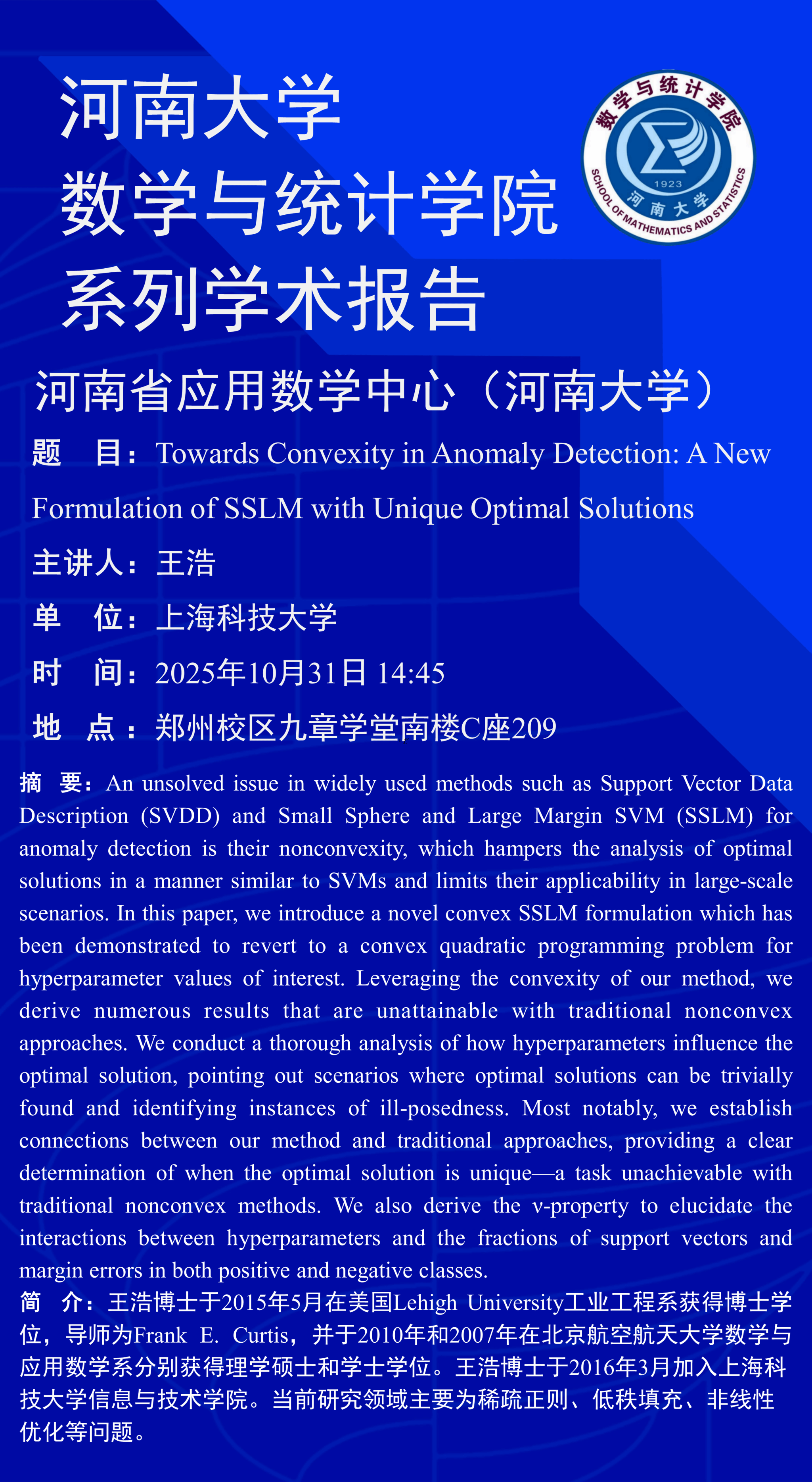 题 目:Towards Convexity in Anomaly Detection: A New Formulation of SSLM with Unique Optimal Solutions